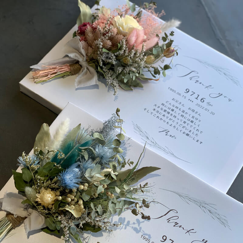 ご両親への贈呈用ギフト、大切な人やご友人へのギフトなど、ご予算に合わせてお作り致します。