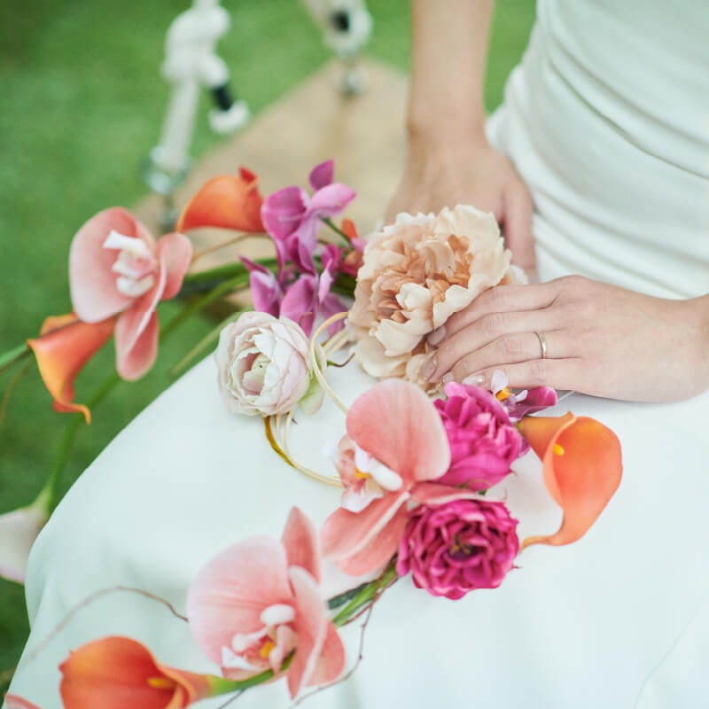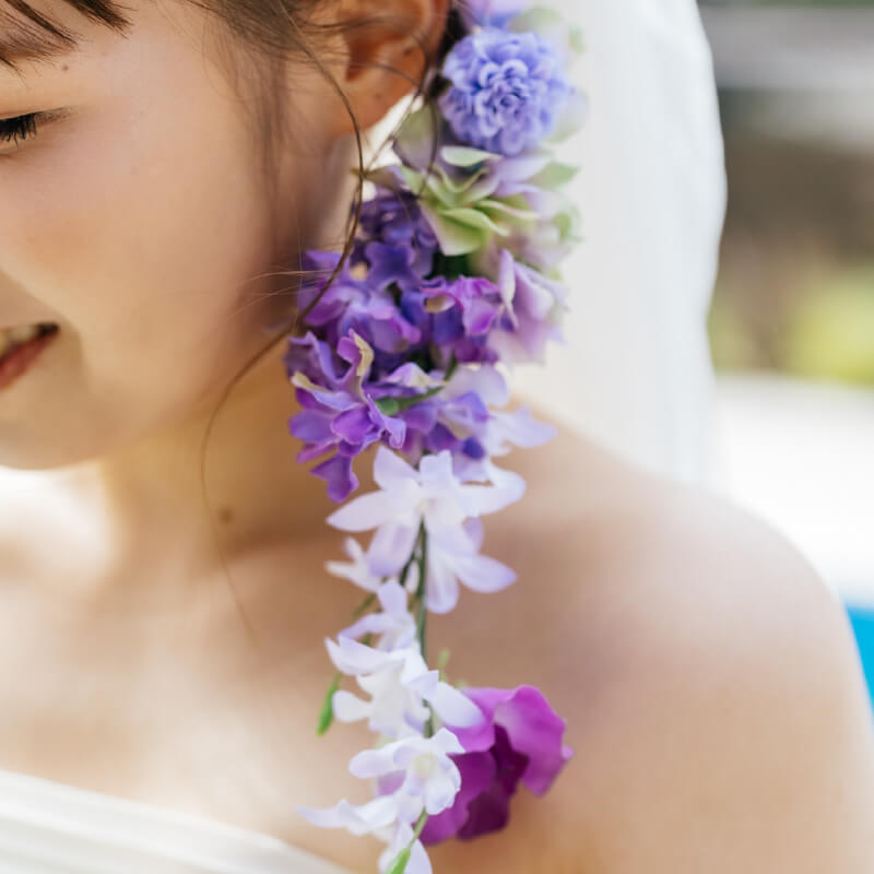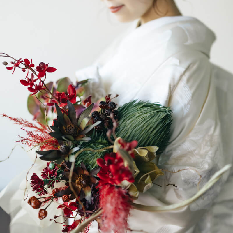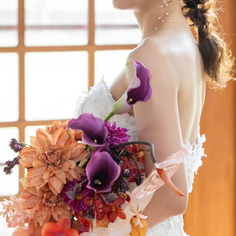 デザイン致します。お好きなお花や色などお伝えいただければ、花嫁様に合ったデザインをご提案